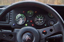 A l’intérieur, on retrouve le même type de planche de bord que la Chrono avec quelques différences par contre : les sièges baquets sont ici abandonnés et laissent place à ceux de la Visa GT Tonic, noirs à bordure rouge au dessin plus commun. Le volant sport à trois branches de la Chrono retrouve sa place.