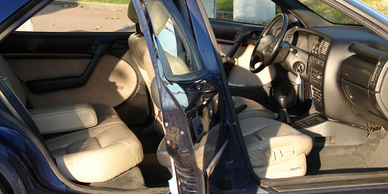 Bon, trèves de plaisanteries, montons à bord. A l'intérieur... pas de folie non plus. De base, on se retrouve avec un bon vieux velours à carreaux vert foncé, gris foncé ou noir. Le tableau de bord est encore un peu baigné des "années 80", avec des formes simples, une console très verticale et beaucoup de plastique brut. Face au conducteur, des compteurs sans fioriture, alignés en rang d'oignons. Le noir domine et la finition est de bon niveau, l'ambiance se montrerait un brin austère si notre modèle d'essai n'était pas pourvu d'un cuir beige qui égaye l'ensemble en ajoutant une note plus haut de gamme. Les sièges sont confortables, mais manquent de maintien malgré l'emploi de "sièges sport" par Citroën. Mystère ergonomique de la Xantia phase 1, une barre de maintien surplombe la boîte à gants et son utilité ne nous apparaît pas (encore) évidente. Les commandes sont douces et l'on est à l'aise. Pas de doute, la Xantia est une avaleuse de kilomètres. Mais sur ce seul chapitre du style, l'Activa qui n'était pas spécialement donnée question tarif se démarque aussi trop peu du reste de la gamme.