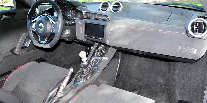 Si elle ne se voit pas forcément dans l'habitacle dont la finition a fait de sérieux progrès, la chasse aux kilos menée sur l'Evora 400 a permis d'alléger les sièges de 3 kg chacun. Optimisée mais pas radicale, la GT410 Sport se veut plus polyvalente que la GT430 ; elle est donc proposée au choix en configuration biplace "2+0" ou 2+2, en option. Compte tenu de l'espace très restreint qu'offre la banquette, il faudra vraiment limiter son usage à de petits déplacements et pour des enfants qui n'ont pas les jambes trop longues... Le confort des baquets de la GT410 Sport est tout à fait correct et le maintien excellent fait qu'on se sent en osmose avec sa monture.