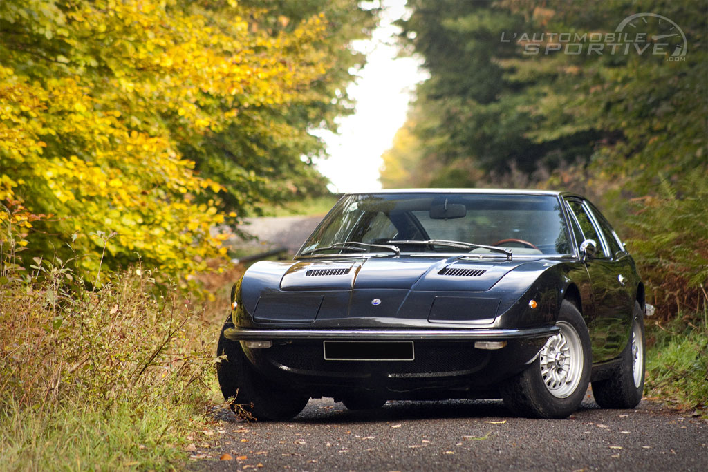 Ce n’est pas tous les jours que l’on a la chance de prendre le volant d’une Indy. De nos jours, quand on évoque un véhicule de grand tourisme, on l’assimile à une automobile aseptisée et avare en sensations. Il suffit de s’installer dans cette Maserati pour se rendre compte qu’il y a 40 ans, on n’avait pas la même définition de la chose… Bien que la voiture ne soit pas basse, la position de conduite est assez abaissée à cause du siège conducteur qui s’affaisse sous notre poids. Le rétroviseur de gauche est minuscule, à tel point qu’il semble absolument inutile. On préfère alors se concentrer sur le rétro intérieur… L’immense frein à main placé à la droite du conducteur met également dans l’ambiance, tout comme les premiers changements de rapport qui réclament toute votre attention. Qui regarde la route pendant ce temps-là ?! Une expérience comme celle-là impose le respect vis-à-vis de nos ancêtres. Mais en contrepartie, ils bénéficiaient d’un plaisir immense au volant de leurs belles de l’époque. Heureusement qu’il existe quelques collectionneurs de bon goût pour perpétuer cette tradition. Le son du V8 carbu envahit l’habitacle qui réagit aux grognements de ce majestueux moteur. Quel pied !