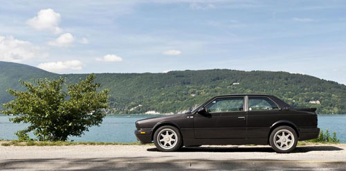 Présenté en 1990 et au mois de décembre comme le voulait la tradition à l’époque, le nouveau bébé de Maserati est uniquement disponible en deux teintes et ne porte pas le nom d’un vent, comme cela est souvent le cas depuis la Mistral. A la place, l’appellation choisie parle d’elle-même et annonce la couleur. Si avez encore des doutes que le but était de faire une 2.24v sauce Shamal, il suffit de remarquer les feux arrière fumés pour les lever. Ceci est uniquement valable pour la carrosserie noire, la rouge gardant les feux classiques. Le reste est beaucoup moins bestial et on retrouve plus ou moins une carrosserie de Biturbo comme une autre. A ceci près que la face avant hérite d’un facelift, lui aussi initié par la Shamal.