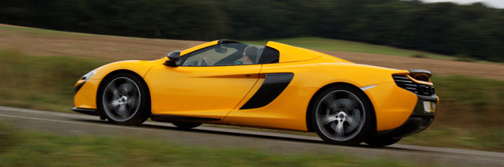 Parlons vitesse justement, même si ce mot est devenu un affreux tabou dans le monde automobile. Les performances de la 650S Spider sont à couper le souffle. Précisons au passage que le poids total de la Spider excède de seulement 40 kg celui du Coupé, ce qui n'a donc quasiment pas d'impact sur les chronos. Les accélérations demeurent phénoménales. Bien plus encore que le 0 à 100 km/h dégommé en 3 secondes, le catapultage à 200 km/h en seulement 8,6 secondes impose de bien conserver tout son sang froid... De ce fait, à aucun moment la 650S ne nous a fait regretter l'absence de boîte de manuelle. Le paysage défile si vite au volant qu'on préfére se concentrer pleinement sur les trajectoires et tenir le volant bien fermement ! Et le champ de vision qui se réduit à mesure qu'on se projette dans l'horizon, façon "hyper espace", rend superflue la lecture du compteur de vitesse...