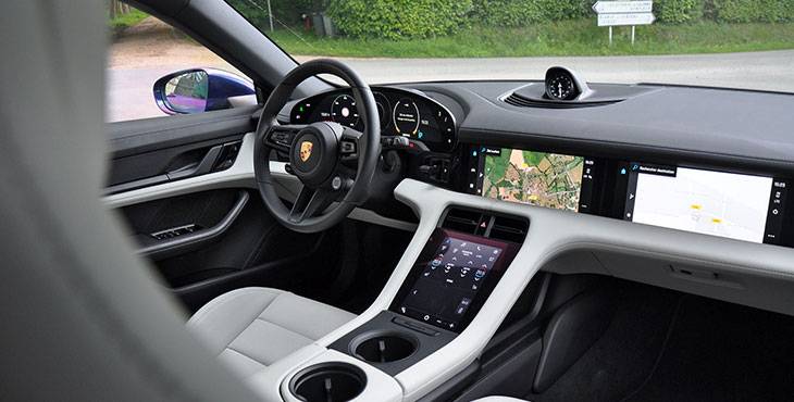 Après la lecture de la fiche technique vient le temps de la mise en pratique, avec une certaine appréhension il faut bien reconnaître concernant les bornes de recharge. «Chat échaudé craint l'eau froide» comme dit le proverbe... Mettant de côté ce point dans un premier temps, le constat qui s'impose rapidement au fil des kilomètres peut se résumer à : "whaou !". La débauche de technologie sur laquelle repose la berline électrique de Porsche n'a pas éclipsé un critère fondamental : le plaisir de conduire ! A ce niveau, difficile de nier que l'électronique parvient réellement à faire des miracles. Le premier est de réussir à effacer totalement le poids réel - et conséquent - en mouvement. C'est bien simple, les changements d'appuis n'engendrent aucun roulis ni temps mort et on pourrait facilement se croire au volant d'une sportive affichant une demi-tonne de moins sur la balance ! Le second miracle est de réussir à préserver en toutes circonstances un confort de très haut niveau. N'ayant jamais la sensation que les amortisseurs tapent en butée comme cela pouvait être le cas avec l'ancienne Panamera par exemple, on peut se permettre de maintenir un mode sport sur mauvaise route, ou inversement rester en mode normal sans pour autant avoir l'impression de diriger un chalutier dans la tempête.