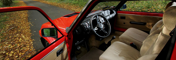 Idem pour la conduite. La R5 Turbo met le raffinement de côté. Une fois le petit 1400cm3 démarré, il faut lui laisser le temps de monter tranquillement en température. A ce moment, rien, ou pas grand chose, ne le distingue du bon vieux Cleon qui équipait à l'époque la R5 de Mr Tout-le-monde... Sauf qu'en appuyant plus fermement sur la pédale de droite, une fois passé le cap des 3500 tr/mn on se retrouve catapulté comme dans la guerre des étoiles, en mode hyper propulsion ! Collé au siège, le pilote a d'autres préoccupations que d'essayer de lire ce qu'indiquent la batterie de manomètres au tableau de bord, dont les aiguilles semblent flotter avec une incertitude peu rassurante. Et dire qu'à l'époque on disait avoir réduit au maximum le temps de réponse du turbo ! Il est conseillé de ne pas essayer un moteur turbo actuel après ça, sous peine de s'ennuyer fermement. Autant dire que la bestialité de cette mécanique n'a d'égal que son manque de souplesse. En dessous de 4000 tr/mn, la R5 Turbo se montre en fait plutôt molle. Mais quand la puissance déboule, quelle pêche ! La conduite est comme le fonctionnement du turbocompresseur, du type ON/OFF. Pour la ville, c'est l'enfer. En revanche pour les dépassement sur nationale, c'est top ! La plage d'utilisation optimale du 1.4L se situe en pratique, entre 4000 et 6500 tr/mn, autant dire qu'il s'agit d'un moteur résolument sportif. La boîte n'est pas parfaitement étagée et les trous entre les rapports sont perceptibles. Le comportement routier est totalement bluffant d'efficacité. En revanche, méfiance lors des réaccélérations en sortie de virage sous peine de voir finir votre bel engin dans le décor ! Les limites sont dures à atteindre mais mieux vaut ne pas trop y jouer car les réactions de la bête sont brutales. En tout cas, conduire cette sportive d'anthologie reste un moment inoubliable tant elle vous propulse dans un monde d'émotion pure, mélant nostalgie, collection, compétition et passion.