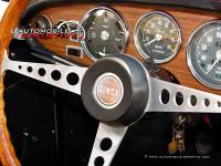 La planche de bord en imitation bois avec ses cadrans cerclés de chrome et le petit volant 3 branches à jante en bois nous replongent immédiatement dans l'ambiance des sportives des années 60. L'ensemble revêt même quelques accents anglais et un certain charme. On peut signaler une instrumention assez complète avec compte-tours central, des pochettes de rangement, un allume cigare, des aérateurs latéraux réglables, et une bonne position de conduite. La vision médiocre dans le petit rétro obus est compensée par ce charme inimitable du chrome qui l'enrobe.