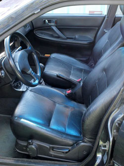 A l'intérieur de la Subaru Legacy Turbo, la présentation est tout aussi classique et même relativement austère. Tapissé de noir, le tableau de bord est loin des standards actuels mais ne détonne pas dans la production de l'époque. Cependant la fabrication est robuste et l'ensemble vieillit bien, même si le temps aura vite raison des joints de portière qui émettent des sifflements insistants, ou encore des arrimages qui grincents de partout lors des changements d'appuis. L'assise des sièges, qualifiés de semi-baquet à l'époque, est bien loin des véritable baquets de la Legacy RS de compétition. Les sièges, réglables en hauteur et en appui lombaire, manquent de maintien latéral, surtout avec l'option cuir ! En revanche, les mousses ne s'affaissent pas trop avec les ans. La Subaru Legacy a aussi le mérite d'être confortable, offrant une position de conduite agréable sauf peut-être pour les très grands gabarits, la faute à une hauteur maximale du volant insuffisante. Autre détail d'ergonomie douteuse, les boutons d'antibrouillards situés à gauche derrière el volant. Il faut y aller à tâtons, au risque de mettre le dégivrage en route ou d'envoyer une pleine giclée de liquide de nettoyage sur les phares. Le volant monté en série sur la Legacy Turbo est un joli petit Momo recouvert de cuir. Mais pourquoi avoir monté ce cache hideux en plastique mou sur ses branches? Heureusement, il suffit de le déboîter et de le cacher dans un placard du sous-sol pour faire apparaître les branches anodisées noires et les six vis de fixation du volant, comme dans la Mazda 323 GT-R. Tellement plus sport... L'instrumentation est quant à elle un peu chiche. Compte-tours, température d'eau, témoin de pression d'huile et... c'est tout. Vous ne saurez rien sur la température de votre huile ni même la pression du turbo. L'équipement est typique du haut de gamme de l'époque: quatre vitres électriques, rétroviseurs électriques dégivrants, fermeture centralisée à télécommande, jantes alliage 15 pouces, ABS, direction assistée, lave-phares... Le toit ouvrant électrique est également de série. Les options disponibles sont la peinture métallisée, l'intérieur cuir, la climatisation manuelle et les sièges chauffants.