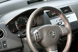 Voilà pour le tour des griefs mais avec un tarif canon de moins de 16 000 euros, la Swift Sport semble en mesure de faire oublier ses petits défauts. Par ailleurs, elle offre une liste d'équipements en série très complète. L'air conditionné à régulation automatique, la radio/CD hi-fi lecteur MP3 avec commandes au volant, les lève-vitres électriques, les rétroviseurs extérieurs électriques et dégivrants, la direction assistée électrique et un innovant système d'ouverture des portes et démarrage moteur sans clé font ainsi partie de la dotation de série. Enfin, pour le sport, le petit volant trois branches est gainé de cuir, tout comme le levier et le soufflet de la boîte de vitesses tandis que le pédalier est en acier inoxydable.