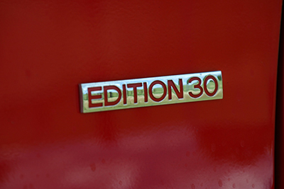 On ne vous fera pas l'injure de re-décrire en détail le physique de la Golf 5 GTI, déjà abordé dans les précédents dossiers qui lui ont été consacrés (Golf GTI Mk5 et Golf GTI DSG Mk5). L'Edition 30 présente une particularité spécifique à la France puisque sa configuration est figée. Si l'acheteur allemand peut opter pour une 3 ou 5 portes et retenir la transmission de son choix, Volkswagen France a préféré l'exclusivité de l'unicité. Un choix qui peut être discutable mais permet au moins d'identifier immédiatement une Edition 30 en France des autres GTI standards. L'Edition 30 a donc chez nous une teinte rouge (comme en Allemagne) de belle facture puisque légèrement foncé évitant ainsi la faute de goût. Les jantes 18 pouces "Detroit" reprises de la Golf GTI sont désormais à voile noir mat du plus bel effet mettant mieux en relief la teinte de la carrosserie. Derrière ce " voile noir " on discerne les étriers de freins peints en rouge. Décidément, c'est une mode qui est en passe de se généraliser sur les modèles à tendance sportive.